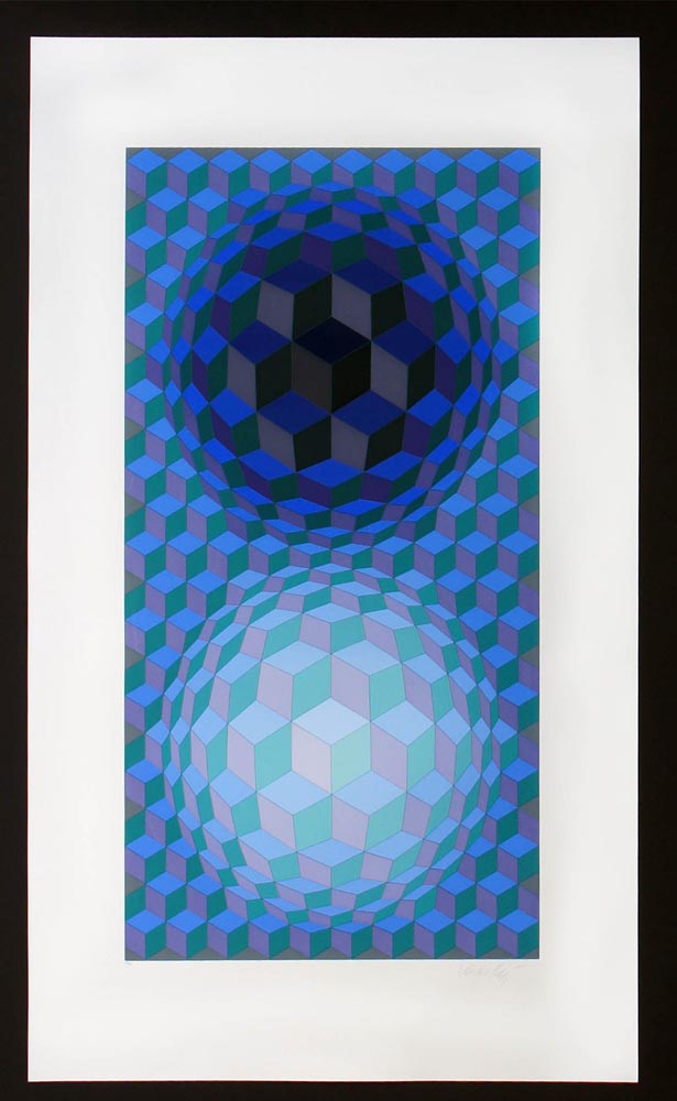 - Note: The "Vega" paintings were started in 1969 and were very well received. In the Vega series we see some of the most advanced applications of Vasarely’s systematic approach to form and color. The paintings are based on spherical distortions to a polychromatic grid. The surface appears to have been warped, giving the feeling of something trying either to break out or to recede back into the depths of the surface.