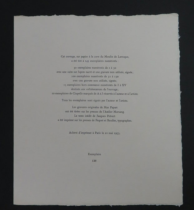 numbered 130 on the justification page from the regular edition of 130, plus 15 proofs (total recorded edition of 145) , Published by Galerie Bosquet et Jacques Goutal Darly, Paris. Printed by Atelier Morsang, Paris.