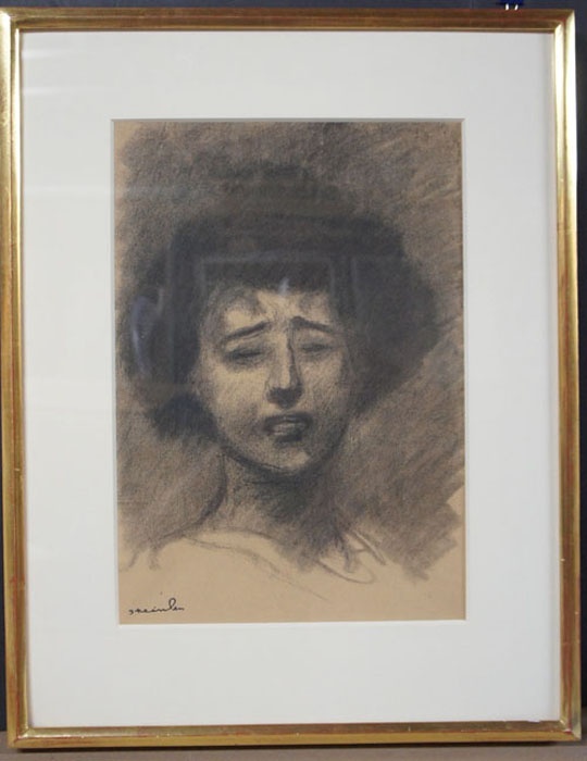 "Frauenbildnis" charcoal on paper,, c 1900, signed with the estate stamp lower left,
