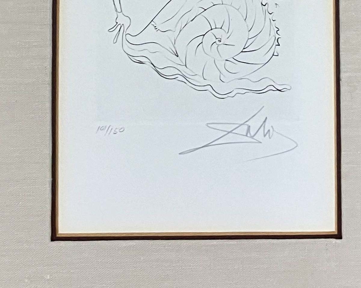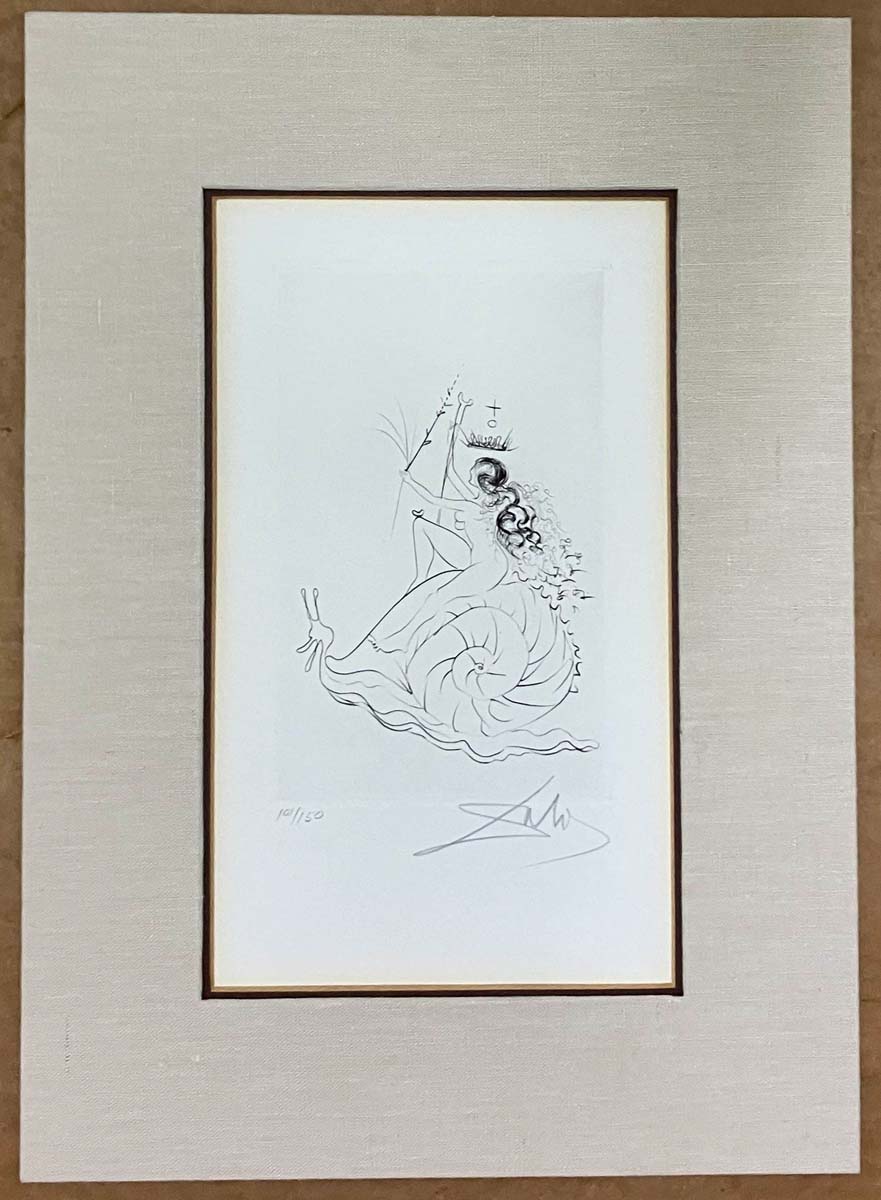 - Note: Very rarely seen example of well known Dali use of the snail as a riding animal. A fine and detailed image drawn entirely by Dali.