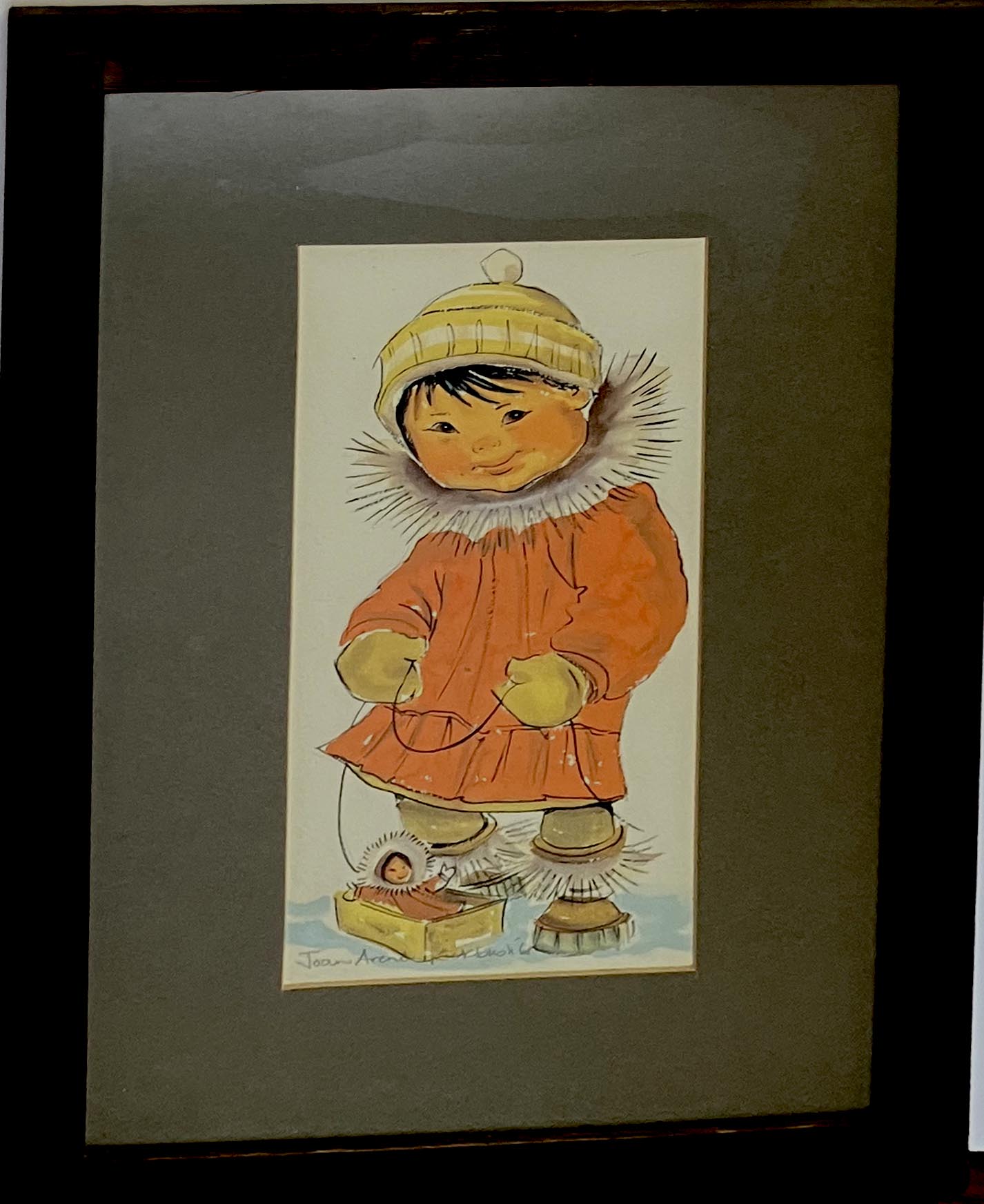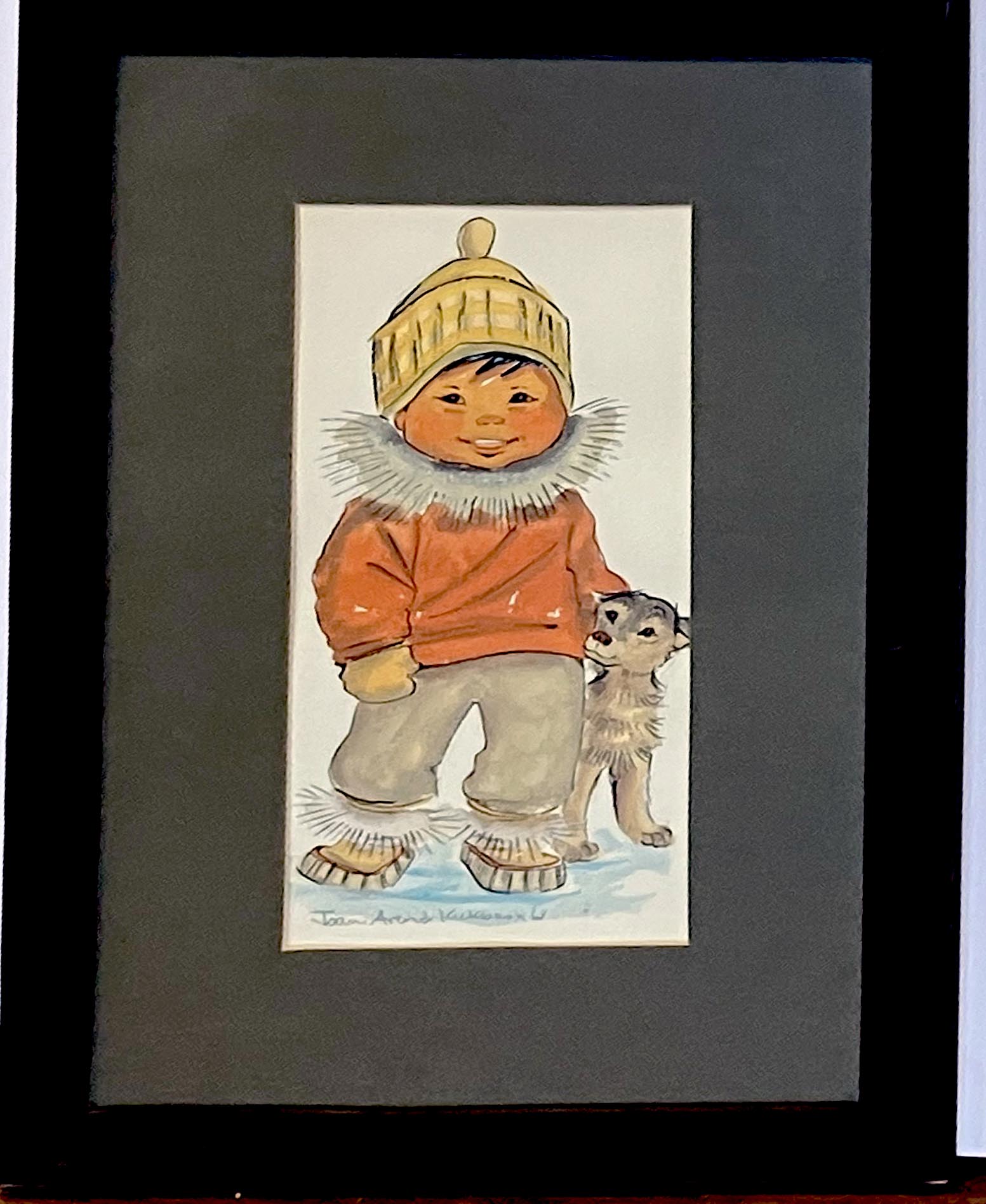 A Pair, Native Boy And Girl In Orange watercolors on paper, 1968, each signed "Joan Arend Kickbush, 68" in pencil,